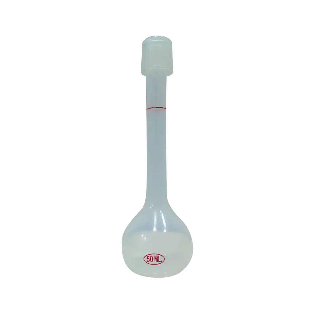 Balão volumétrico , fabricado em polipropileno e TPX; com tampa