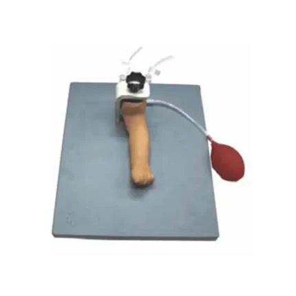 Braço direito infantil em tamanho real, pode realmente identificar locais de punção através da palpação do pulso em locais radiais ou braquiais.1. A pressão arterial realista forma um refluxo realista de sangue na seringa, confirmando a localização adequada da agulha na artéria.2. Resistência realista do tecido e da parede da artéria sentida com a agulha de injeção.3. O braço tem uma seção de tubo arterial instalada.