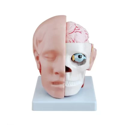 Este modelo mostra a estrutura da cabeça, incluindo a estrutura do cérebro dentro do crânio.