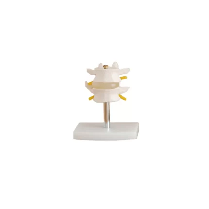 Vértebras lombares em tamanho real são mostradas com disco intervertebral normal e medula espinhal com raízes nervosasEm pé.
