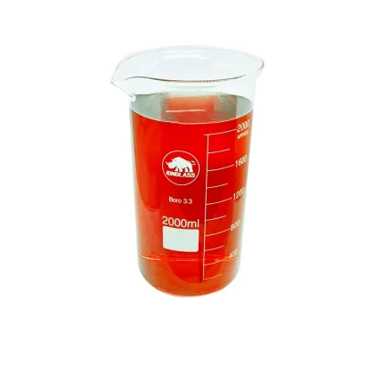 Copo de Béquer forma alta 2000ml.Produzido em vidro Boro 3.3.Graduados em escalas simples
