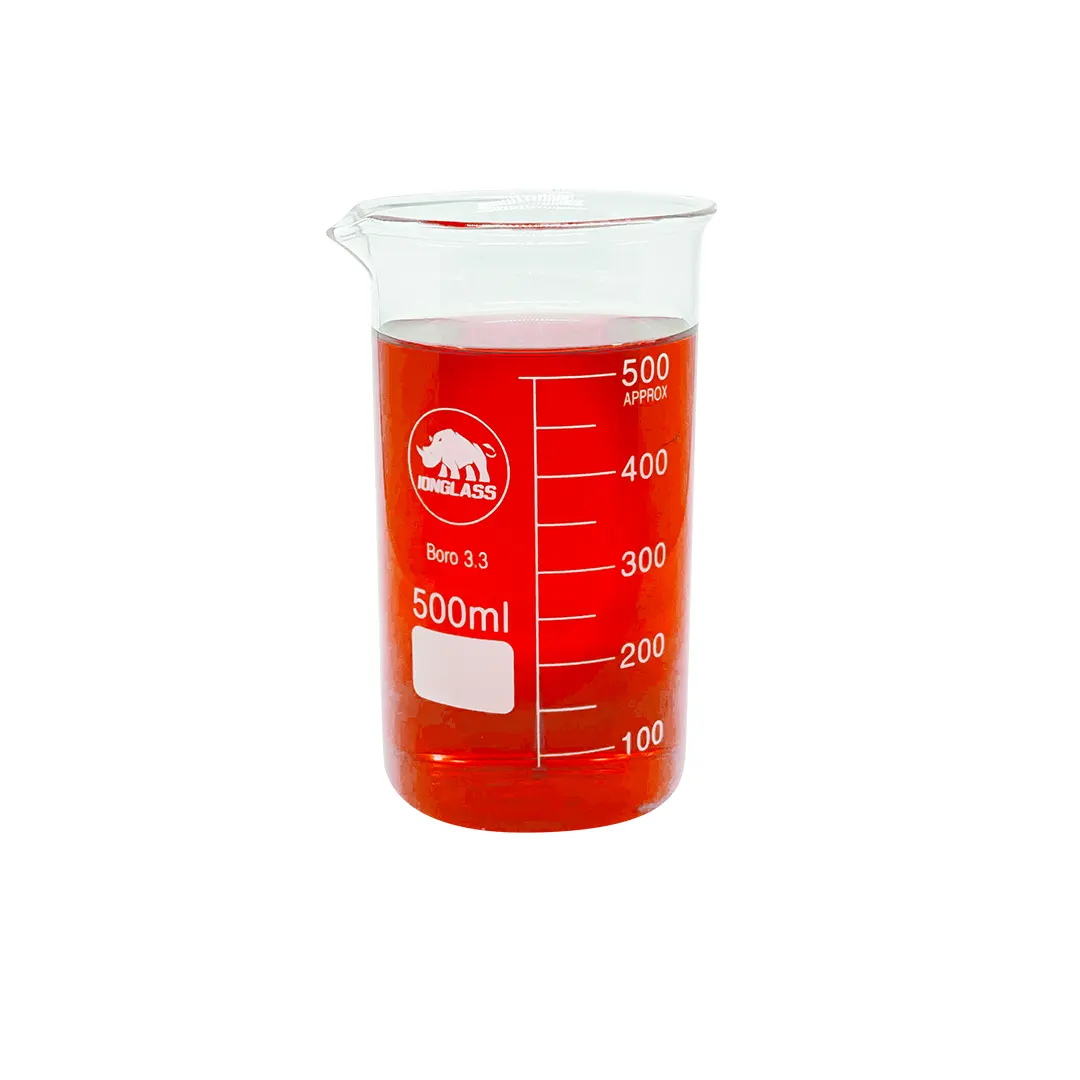 Copo de Béquer forma alta 500ml.Produzido em vidro Boro 3.3.Graduados em escalas simples.