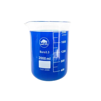 Copo de Béquer forma baixa 2000ml.Produzido em vidro Boro 3.3, graduados em escalas simples.