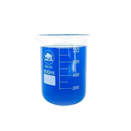 Copo de Béquer forma baixa 800ml.Produzido em vidro Boro 3.3, graduados em escalas simples.