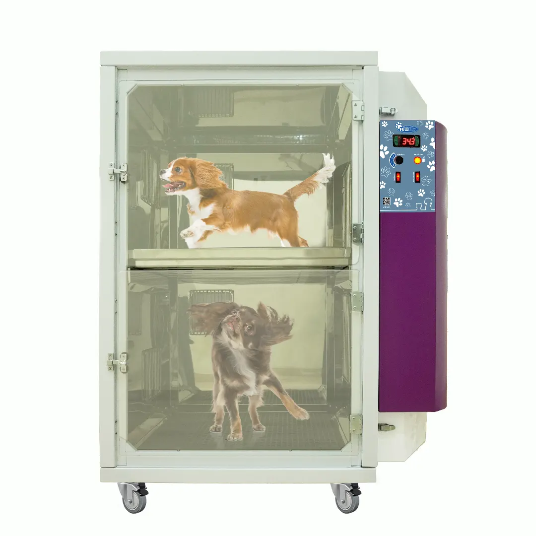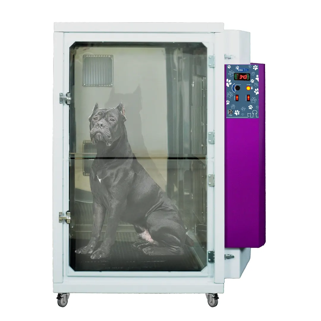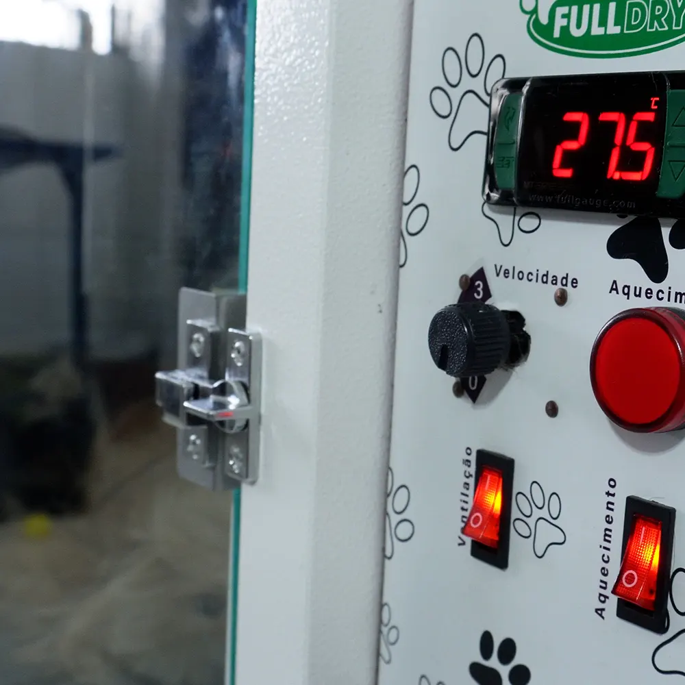 A FullDry, possui uma divisória para dois trabalhos, permitindo uma secagem simultânea. A fácil remoção dos estrados facilitam a secagem de animais de grande porte. O painel digital oferece controle total, permitindo a programação da temperatura ideal e do tempo de secagem. Alcançando uma temperatura entre 26ºc e 31ºc graus.