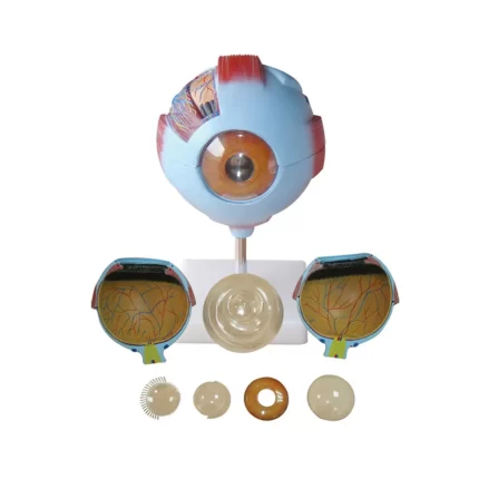 As diferentes partes do modelo do globo ocular são destacáveis para mostrar as seguintes estruturas:Túnica externa: mostrando córnea e esclera com anexos de músculos oculares e nervo óptico.Túnica média: mostrando a íris, o corpo ciliar e o corioide.Retina.Meio de refração: mostrando a lente e o corpo vítreo.