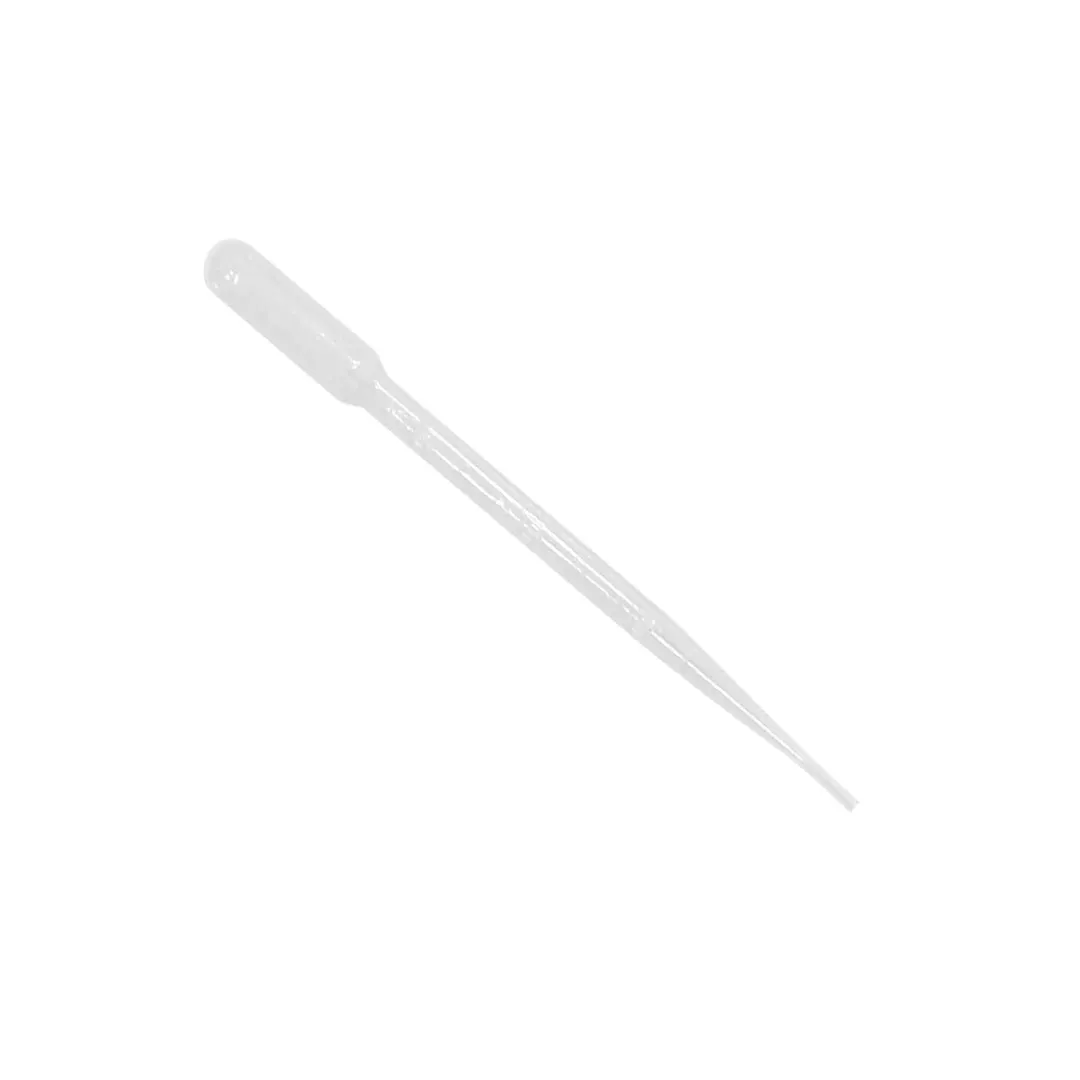 Pipeta Pasteur de 3mL fabricada em polietileno (PE) flexível e descartável;