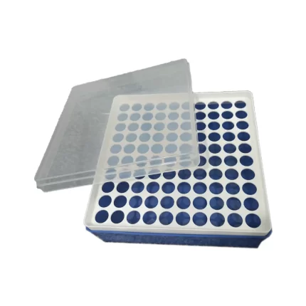 Rack de Polipropileno (PP), com 100 furos redondos, com tampa, para Criotubos/Microtubos de 1,5/2mLANVISA N°80815670007