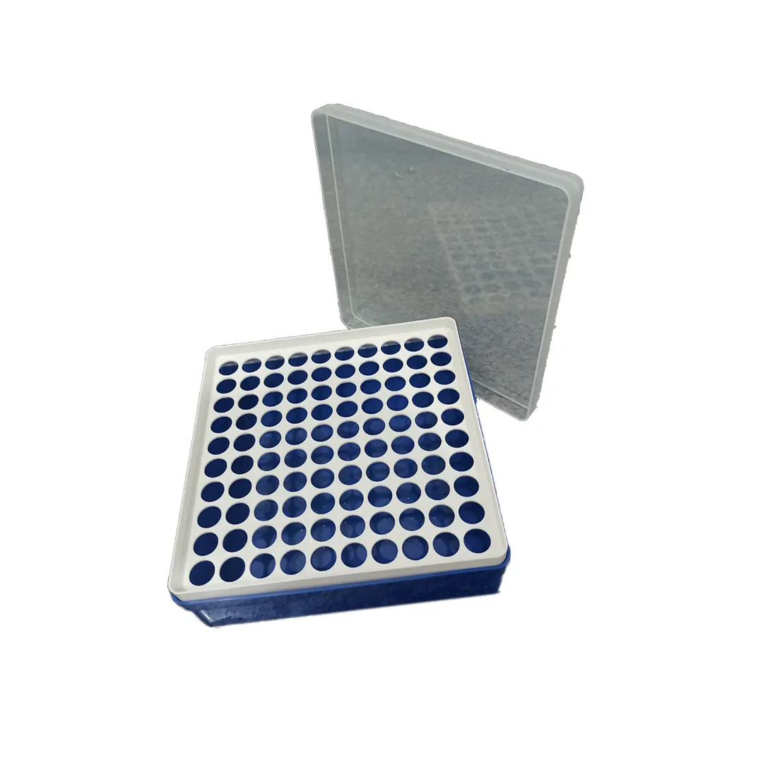Rack de Polipropileno (PP), com 100 furos redondos, com tampa, para Criotubos/Microtubos de 1,5/2mLANVISA N°80815670007