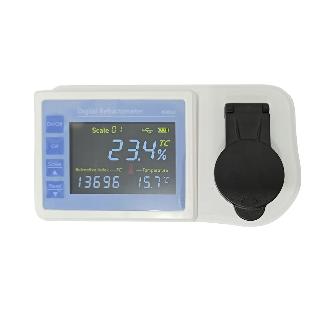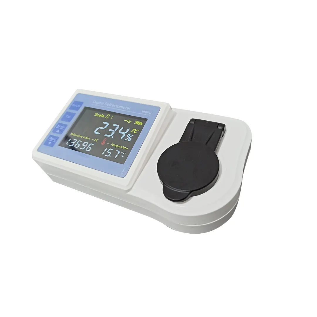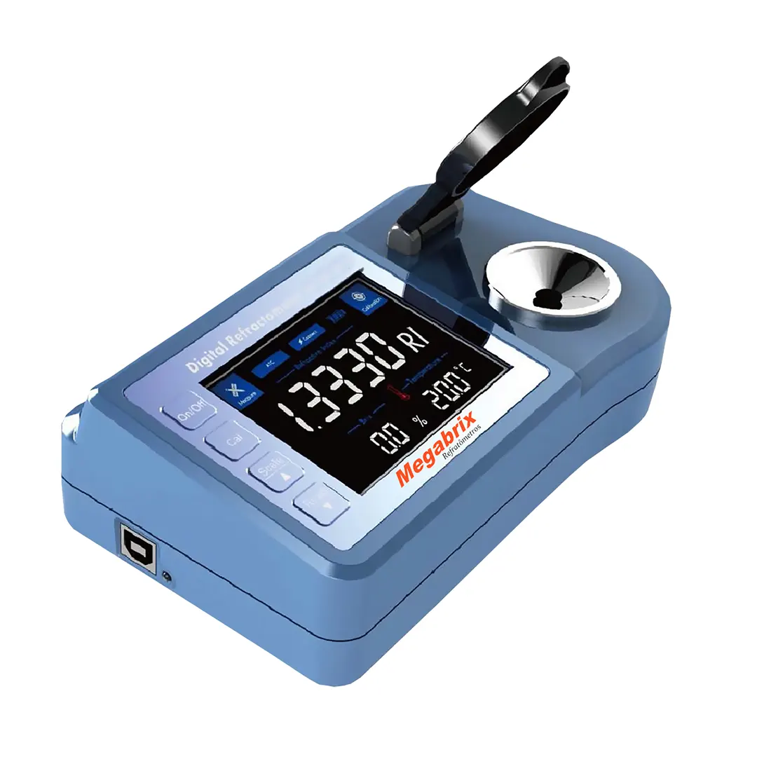 O refratômetro de bancada digital Megabrix possui lente de Safira, tela LCD de 5”, compatível com bateria Li-ion 18650 recarregável e software de aplicação. Pode ser usado nos segmentos clínico, alimentício, automobilístico, entre outros. Com ele também é medida a salinidade da água do mar em estudos oceanográficos. Tem ainda variado uso na indústria, para medir líquidos anticongelantes e outros fluidos industriais.