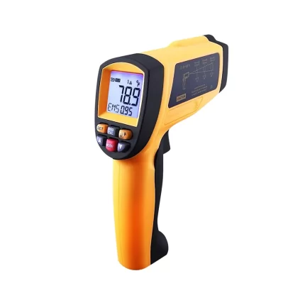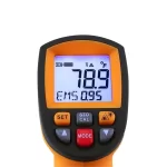 O GM1650E mede rapidamente a temperatura da superfície de um objeto. O usuário precisa pressionar o botão de leitura, apontar com o laser e visualizar a temperatura em menos de um segundo através de seu visor.