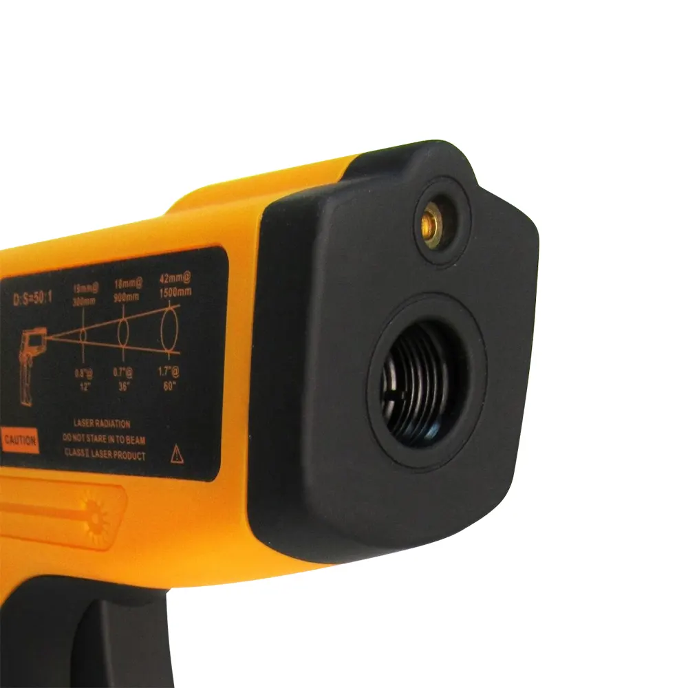 Esse termômetro é equipado com uma tela LCD retroiluminada, atua com grande distância focal(50:1), alta precisão, tempo de resposta rápido(0,5s), emissividade ajustável pelo usuário entre 0,10 a 1,00 e resposta espectral