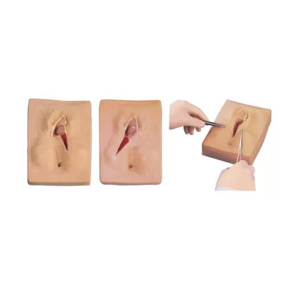 Este modelo é feito de plástico PVC avançado para mostrar o treinamento de sutura da vulva. A incisão posterior direita, esquerda e mediana pode ser selecionada para exercitar o corte e a sutura do períneo.